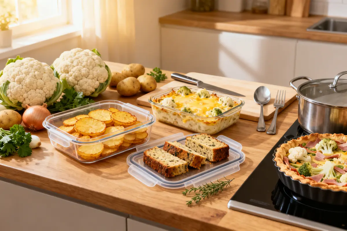 Le principe est direct. Vous utilisez quelques ingrédients communs comme le chou-fleur, les pommes de terre et le jambon. Vous préparez tout en une seule session. Ensuite, vous stockez dans des boîtes hermétiques. C’est idéal pour vos déjeuners au bureau.