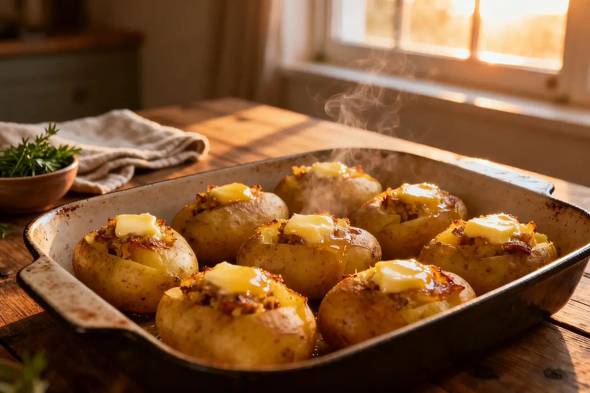 Il suffit parfois d’un plat simple pour donner le ton d’une soirée paisible. Ces pommes de terre farcies maison en font partie. Elles demandent peu d’efforts, composent un repas complet et apportent cette touche réconfortante qui rassemble tout le monde autour de la table. Vous verrez rapidement pourquoi elles gagnent leur place dans votre routine du vendredi soir.