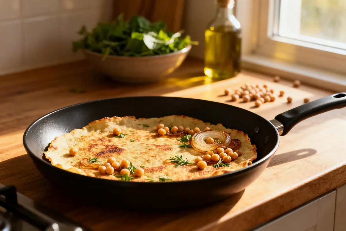 Les pois chiches apportent une bonne dose de fibres et de protéines végétales. Cette tortilla rassasie donc bien plus qu’une omelette classique tout en restant légère.